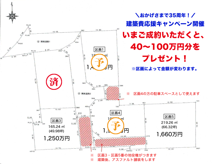 2025.10.23 会社設立35周年 建築費応援キャンペーン\おかげさまで35周年!/建築費応援キャンペーン開催いまご成約いただくと、40〜100万円分をプレゼント!※区画によって金額が変わります。詳しくはこちら 【分譲地】『桐3丁目 』値下げしました